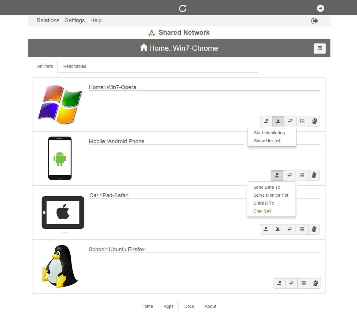 The figure next is a snapshot of the first page a user see when login. It contains a list of active endpoints, including the current one at top in dark background.